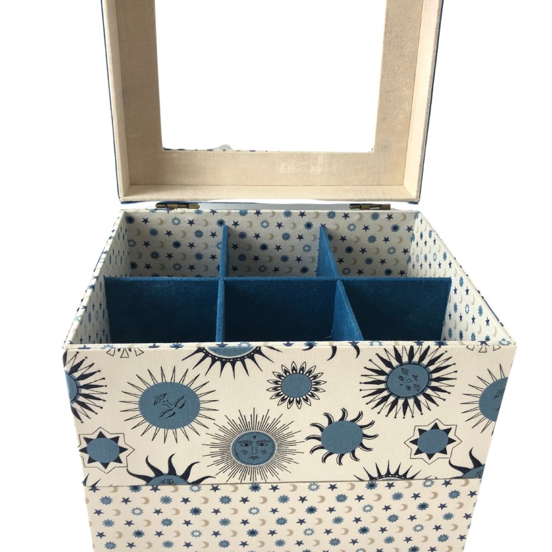 - Charming Design: Adorned with elegant celestial patterns and deep blue accents, this box adds a decorative touch to any room.