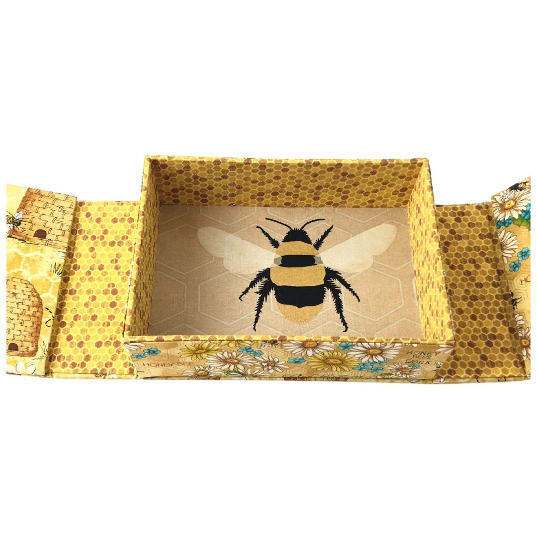 - Beautiful Craftsmanship: Handmade with honeycomb-inspired fabric, adorned with beehives, floral patterns, and a striking bee motif inside.