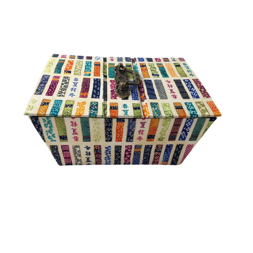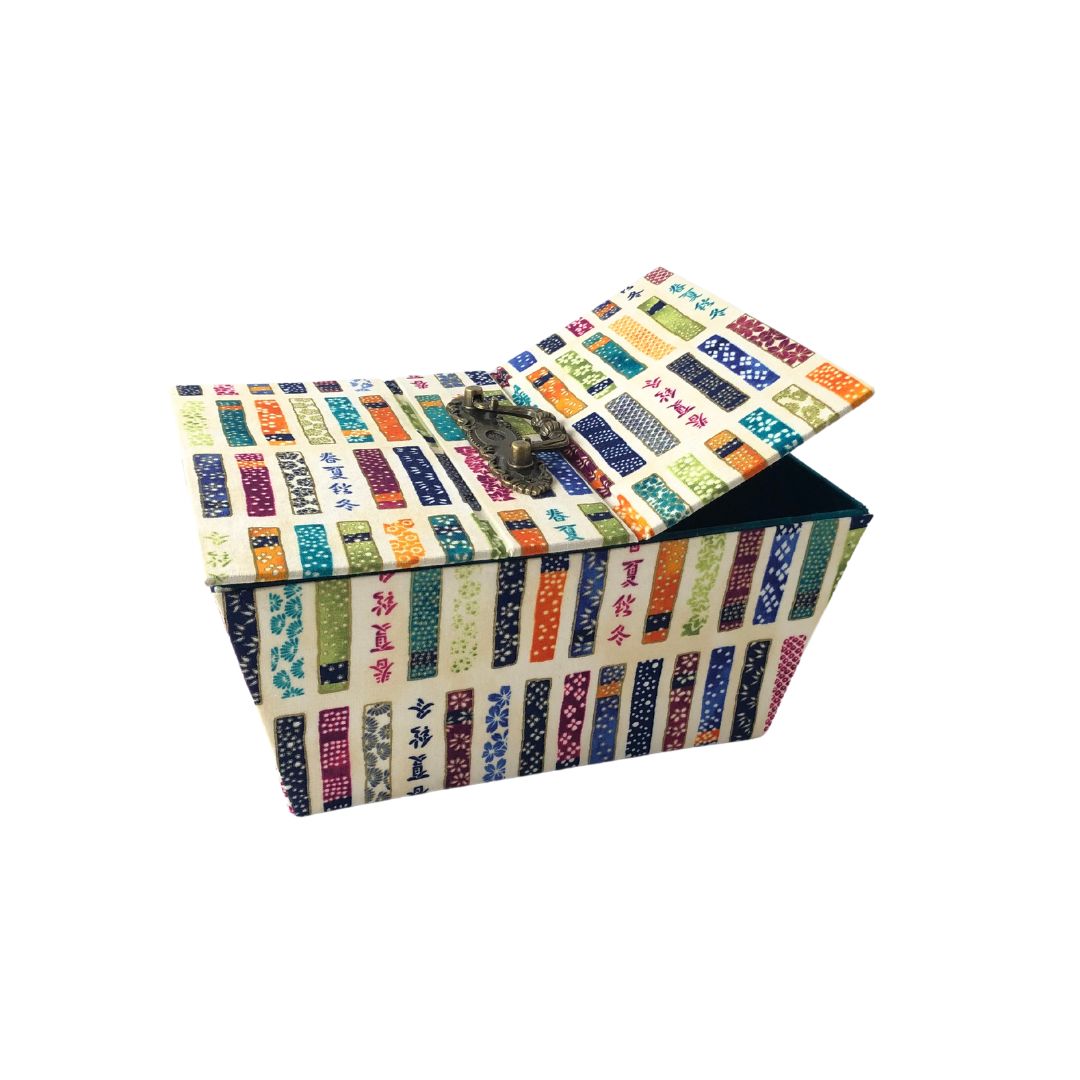 - Design: Features a colorful fabric exterior showcasing intricate patterns and vibrant hues with delicate script details, giving it a unique and artistic look.