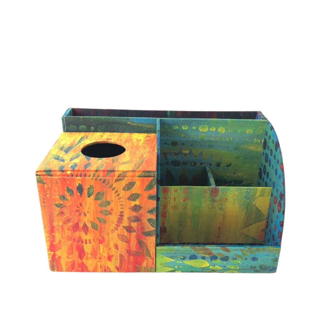 Brighten up your space with this vibrant, handcrafted Grand Organizer that seamlessly blends functionality with artistic flair. Perfect for desks, craft rooms, or living areas, this multi-purpose organizer features: