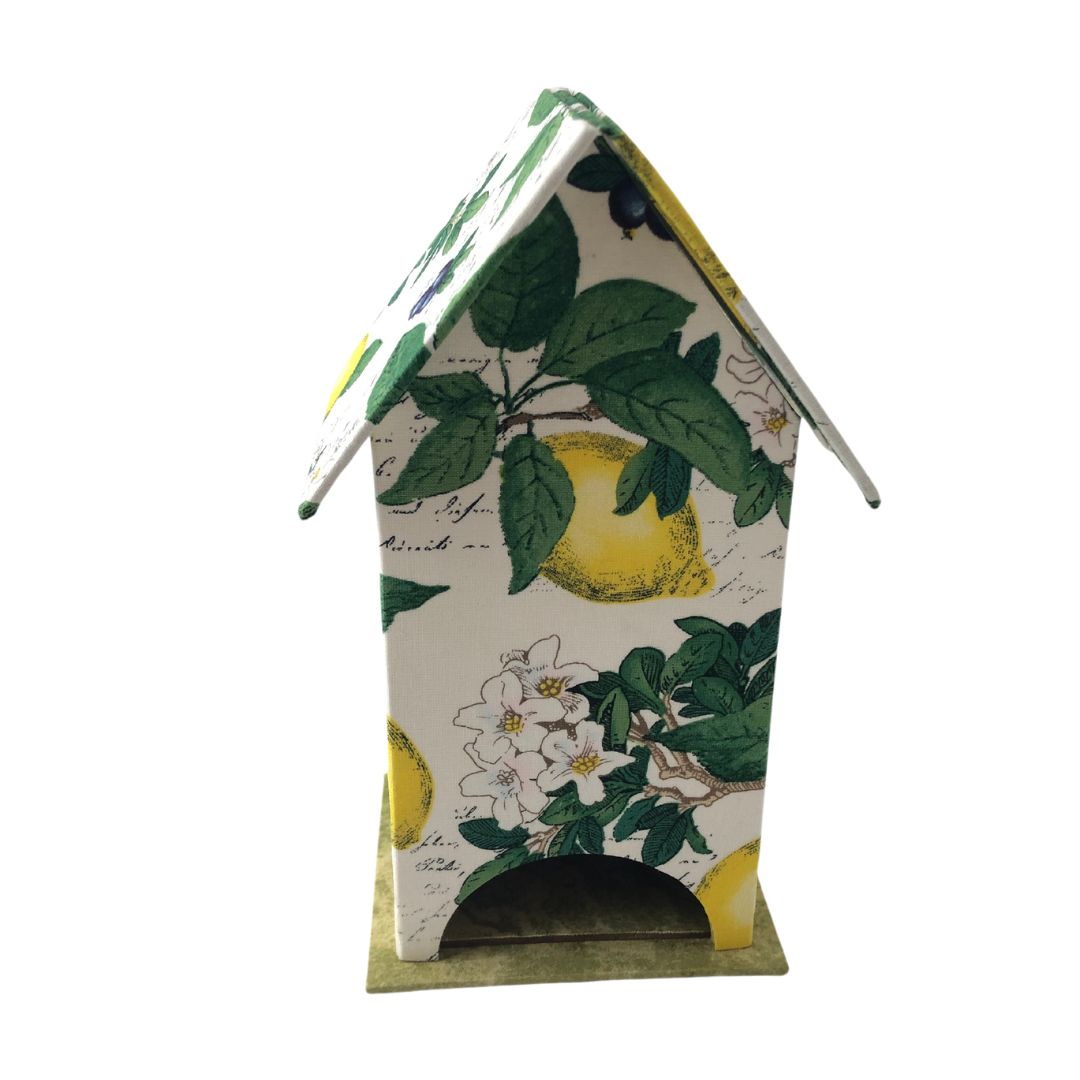 Brighten up your kitchen or tea corner with this charming Lemon Grove Tea House! Designed as a delightful mini tea organizer, this fabric-covered structure resembles a cute little house and opens conveniently from the roof to store your favorite tea bags. The exterior features a fresh, vibrant lemon and floral print that adds a cheerful touch to any decor.