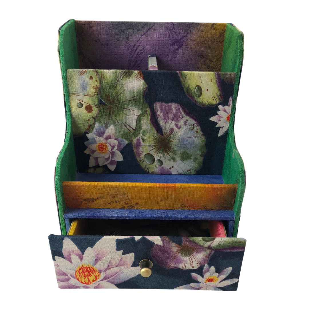Add charm and functionality to your workspace with this beautifully handcrafted Small Desk Organizer with Drawer. Its unique lounge chair design brings a touch of creativity to any desk, while its practical features keep your essentials tidy.